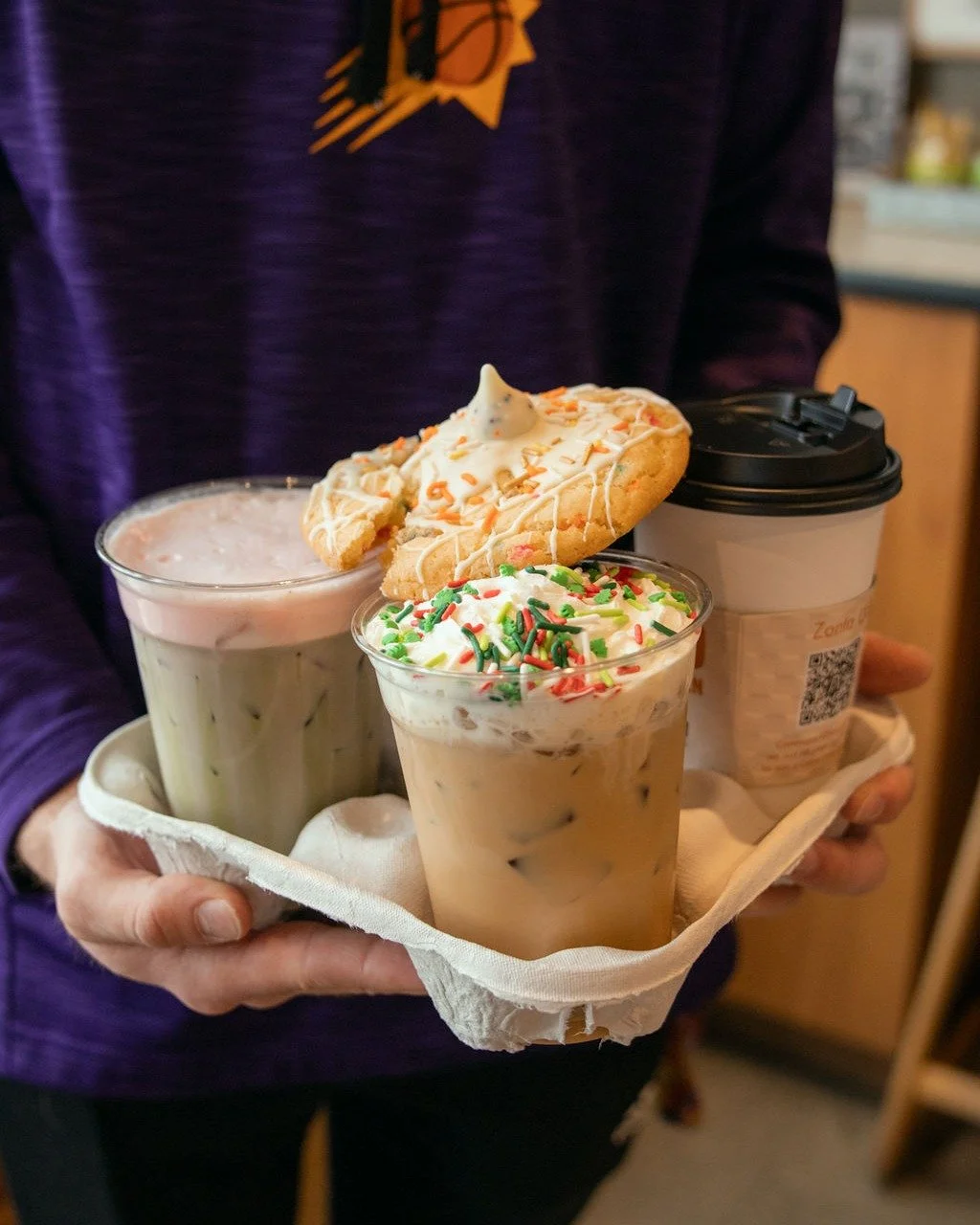 We do offer a selection of cold pre-made drinks and sodas in our drink cooler.